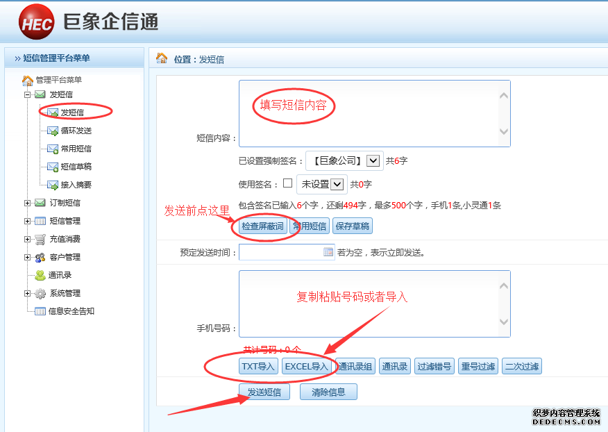 一、短信群發簡易操作示圖說明
